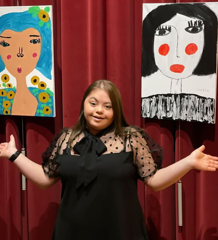 «Amo pintar, me da mucha paz, este año empecé a pintar rostros, como mi imaginación lo permite, sin limitaciones de rasgos ni colores, así como veo mi mundo. Elijo cada color, textura y diseño. Fue un camino muy lindo en el que me encontré con gente que me ayudó mucho. Tuvimos muchas trabas en el momento de integrarme, pero con mucha paciencia lo pudimos lograr. Hoy comparto mis pinceladas con ustedes, esperando que en ellas encuentren alegría, amor, color, esperanza y paz! En cada una de ellas pongo todo mi esmero para transmitir esto que siento cuando pinto» finalizó Sofia.