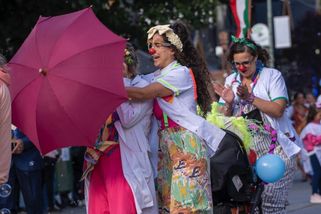 Tras el corte d la torta por parte de la vicegobernadora Reina y del intendente Saloniti, comenzó el desfile mientras e repartían entre los asistentes 1200 muffins, elaborados por el personal de la Secretaria de Desarrollo Humano del Municipio.