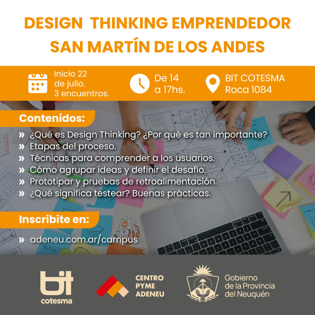 Se llevará a cabo en San Martín de los Andes los días 22,23 y 24 de julio un curso de Design Thinking para emprendedores.