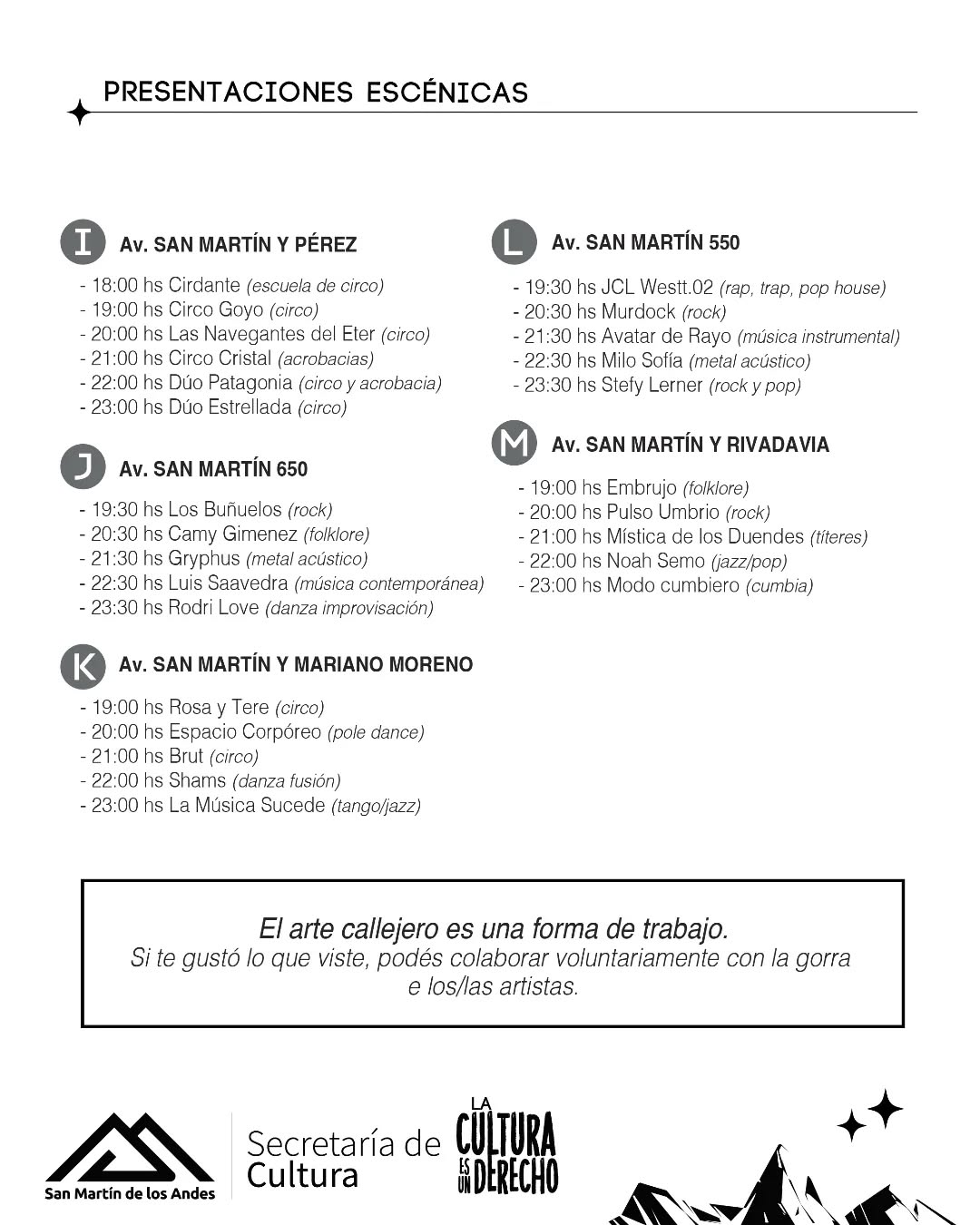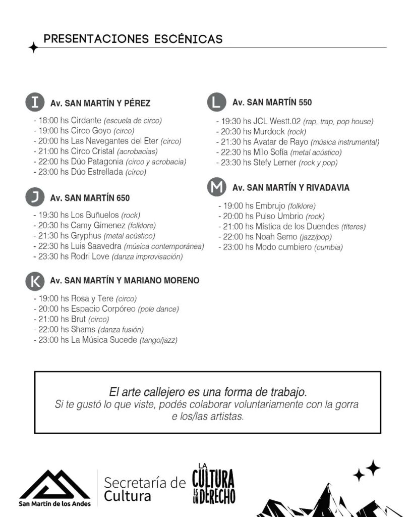 La jornada comenzará a las 18.00hs y contará con más de 70 presentaciones escénicas y una gran cantidad y variedad de espacios expositivos, que se ubicarán a lo largo de la avenida San Martín, desde Sarmiento hasta Rivadavia.