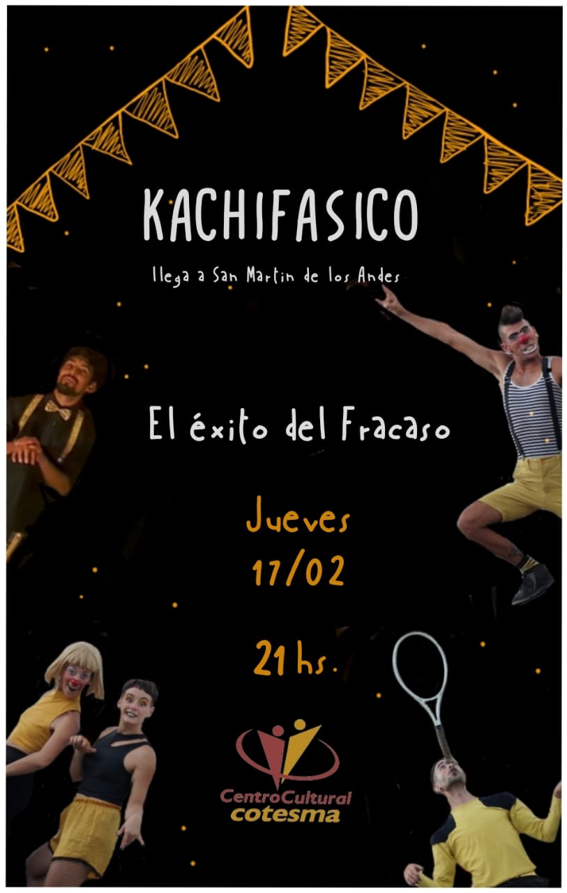 Jueves 17/02 a las 21 hs el Colectivo Kachifásico presenta «EL ÉXITO DEL FRACASO», un espectáculo de circo-teatro, Apto para Todo Público, donde las acrobacias, el malabarismo y la comicidad, se complementan para el entretenimiento de todo público. Entrada General $300.-