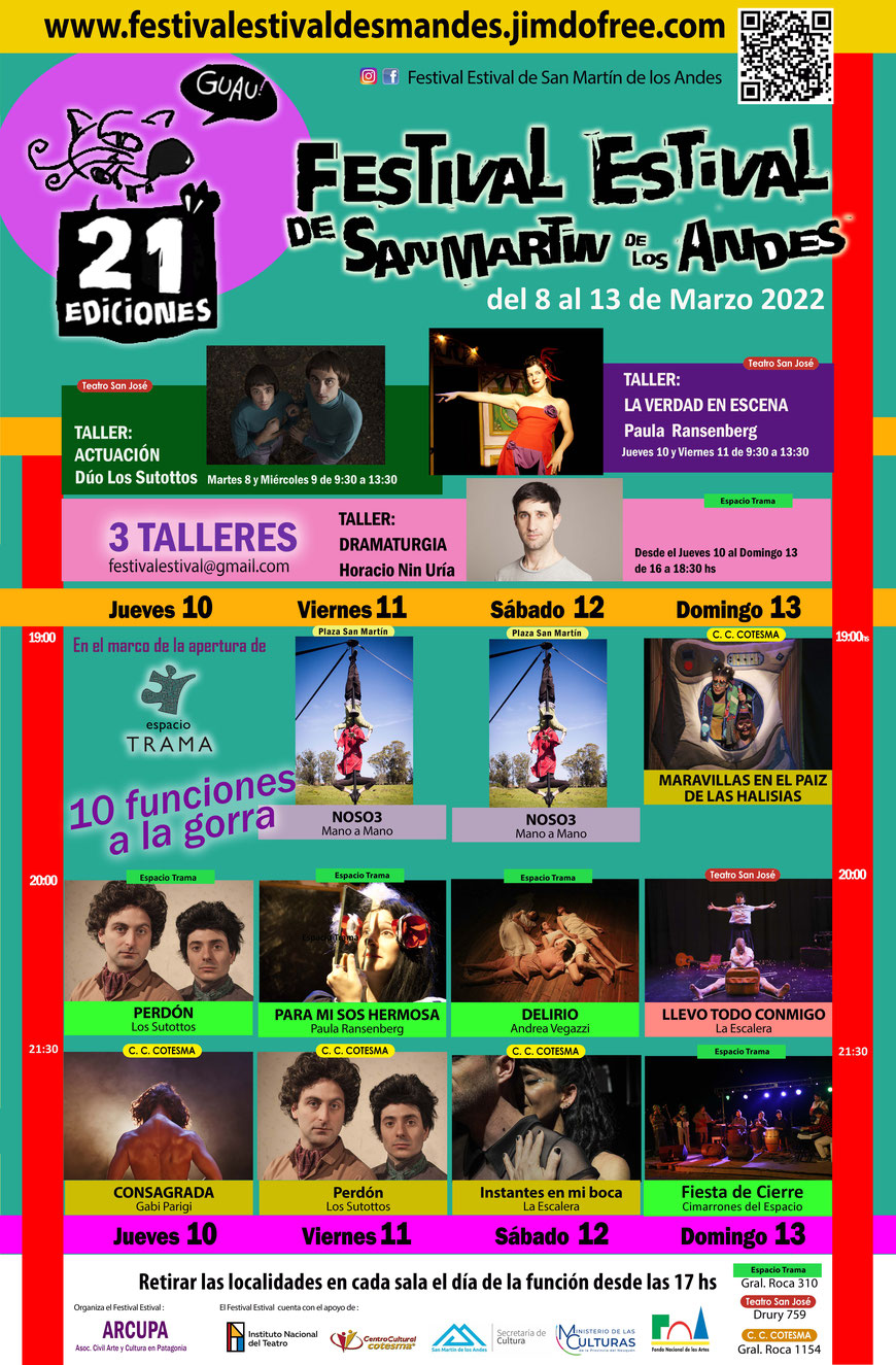 La Edición N°21 del Festival Estival de Teatro de San Martín de los Andes está llegando y, como todos los años, en la Sala Amankay vamos a disfrutar imperdibles obras a la gorra.