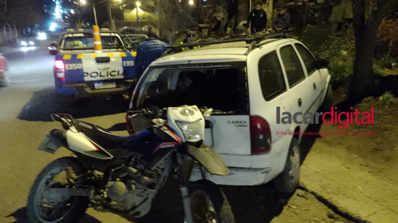 El choque entre una moto y un vehículo que subían por calle Perito Moreno, se registró cerca de las 20 horas.