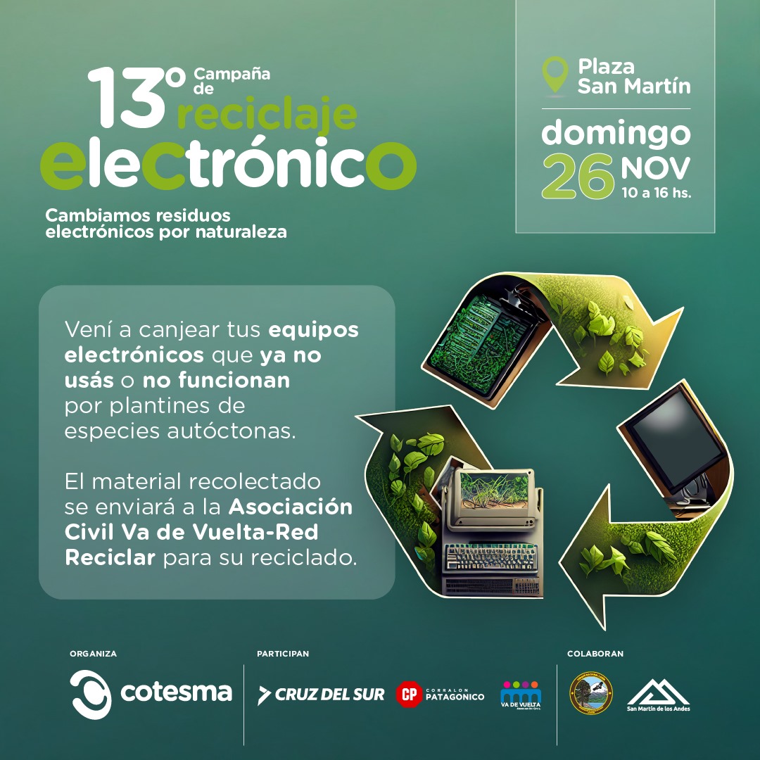 gratuita el transporte de los residuos electrónicos; Corralón Patagónico, que brinda sin costo las