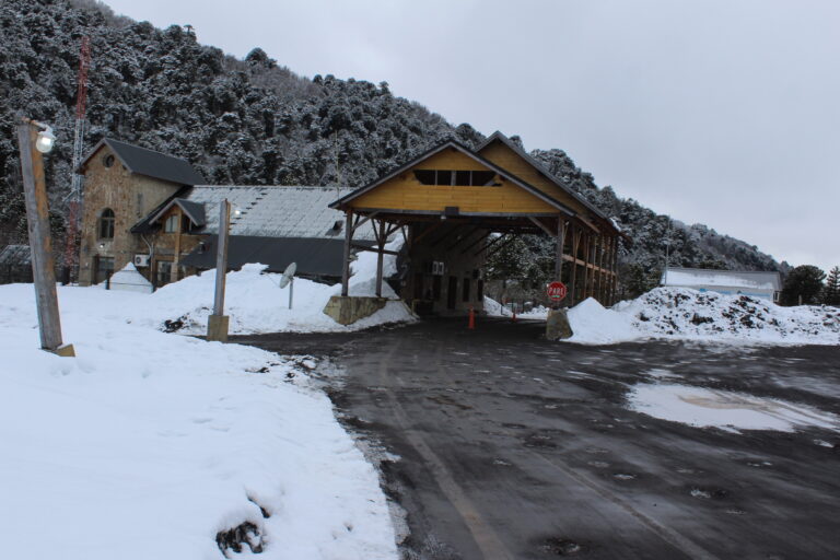 El paso internacional Pino Hachado está cerrado al tránsito. Hielo sobre la calzada...