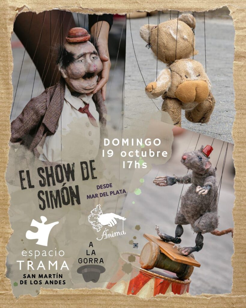 El próximo domingo 19 de octubre a las 17:00, se presentará en Espacio Trama (General Roca 320) la obra “El Show de Simón”, una propuesta teatral de marionetas ideal para compartir en familia.