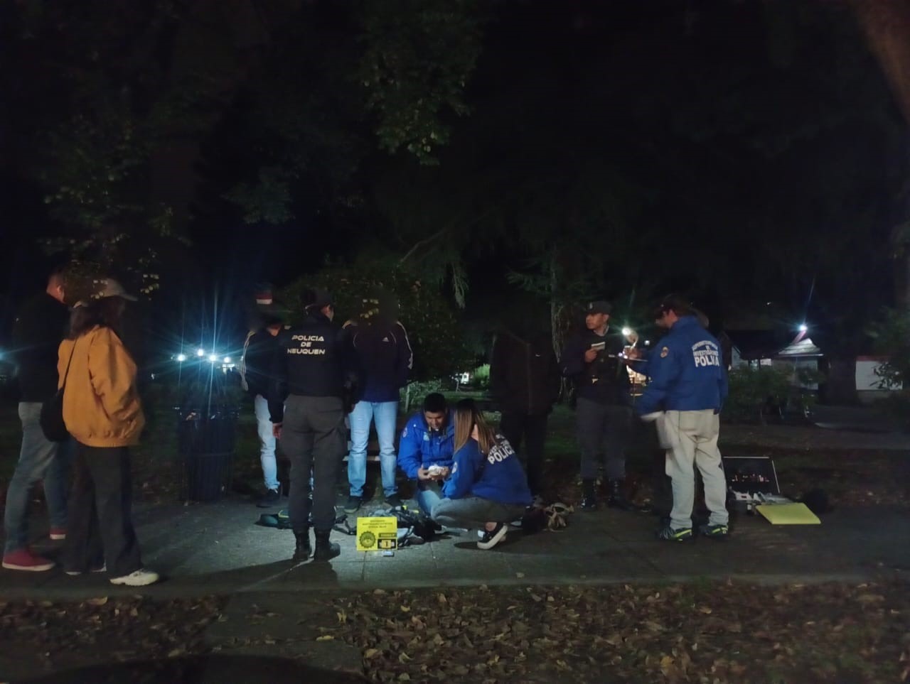 Trabajaron en el lugar un vehículo de la División Antinarcóticos Zona Sur, efectivos dependientes de la División Antinarcóticos Zona Sur, un un can detector de estupefacientes y efectivos del Comando Radioeléctrico San Martín de los Andes.